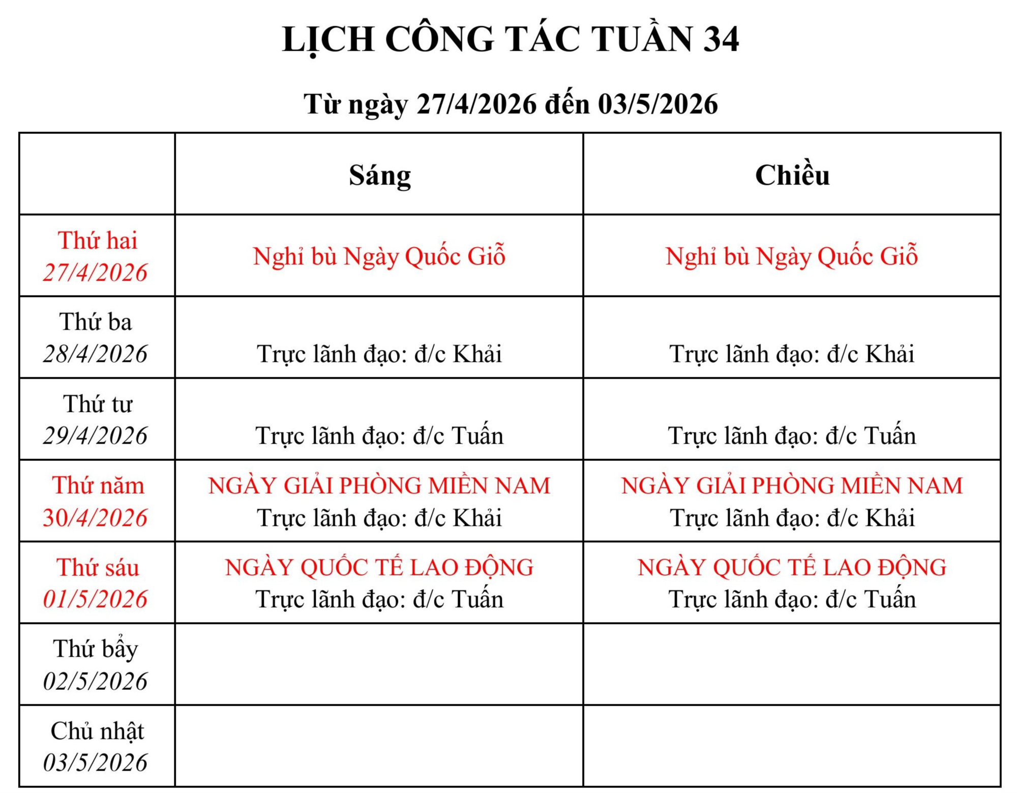 Lịch công tác