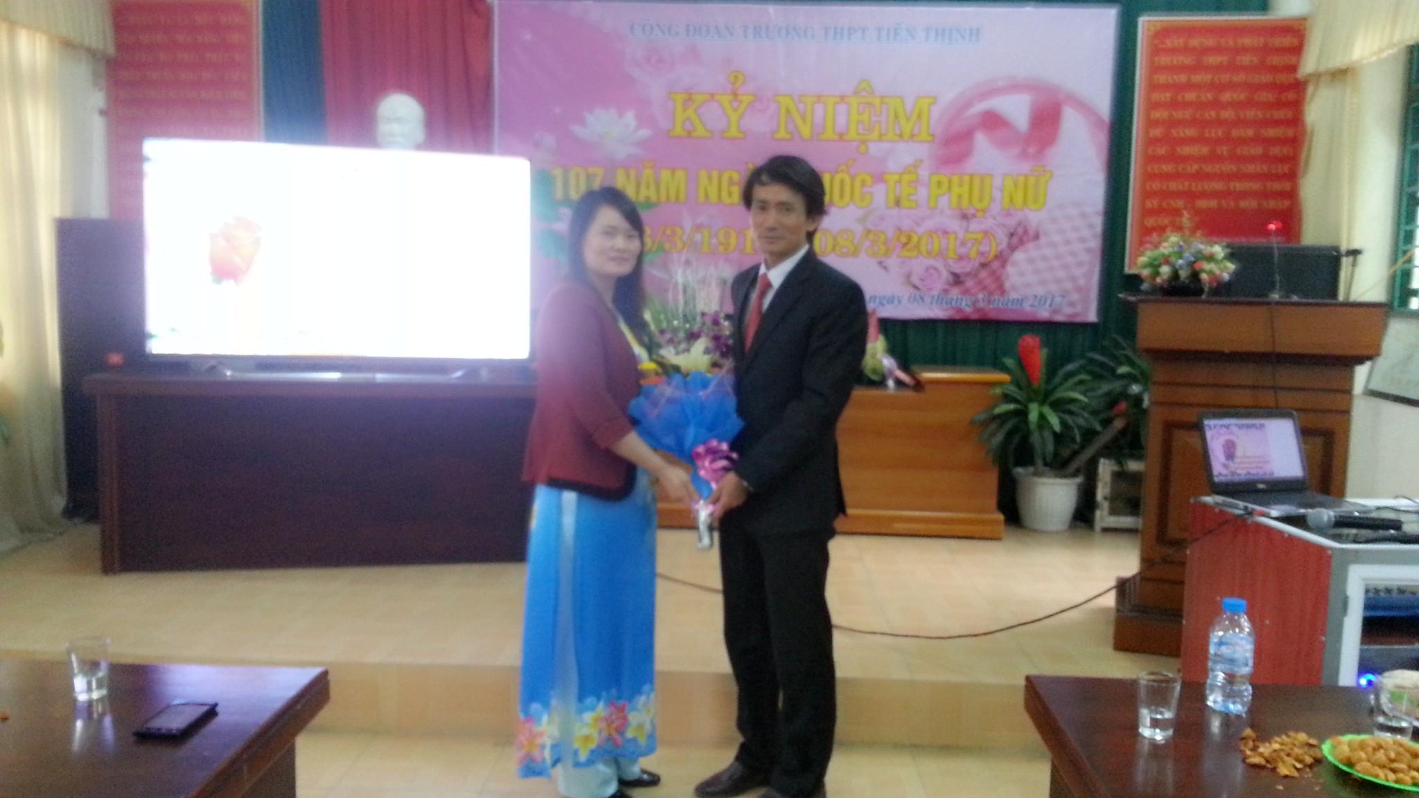 Chiều ngày 8/3/2017 Trường THPT Tiến Thịnh đã rất vui mừng tổ chức một chương trình rât đặc biệt để kỷ niệm sự kiện đặc biệt này, Các đồng chí nữ CBGVNV của nhà trường đã rất hạnh phúc và vui vẻ trong buổi kỷ niệm ngày hôm nay.